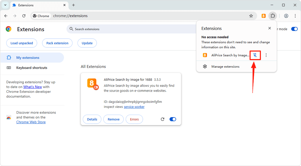 After installation, click the "Pin" icon to keep the extension icon in the browser's top-right corner.