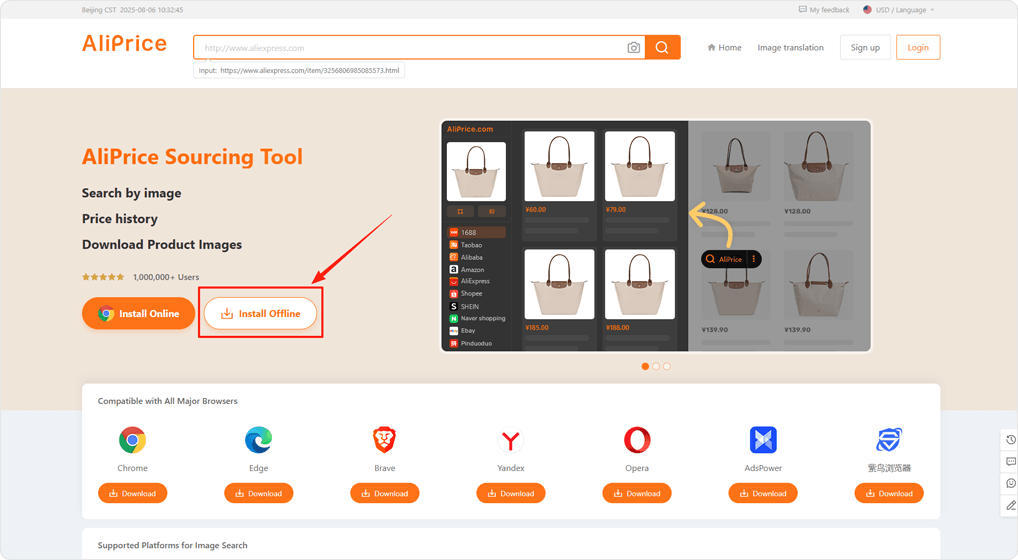 On AliPrice.com, click the [Install Offline] button